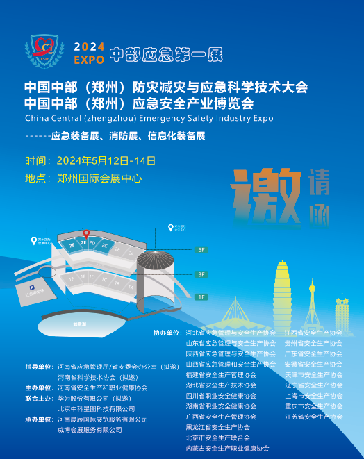 展会概况: 为深入贯彻落实习近平总书记关于应急管理重要指示精神,扎实推动做好抗大震、抢大险、救大灾应急准备。按照党中央、国务院决策部署,全力防控重大安全风险,奋力推进应急管理体系和能力现代化,完善公共安全体系,推动公共安全治理模式向事前预防转型,不断深化专项整治成果,构建中国特色应急管理体系、全面提升综合应急管理能力、有效强化重大安全风险防控,大胆探索、勇于创新,在加强应急管理、提高公共安全治理水平上创造更多的先进经验,推动我国应急救灾产业与国际应急救灾领域的合作交流。 经河南省应急管理厅、河南省科学技术协会批准,由河南省安全生产和职业健康协会、华为股份有限公司、中科星图股份有限公司联合主办,21个省市行业协会协办,河南晟辰国际展览服务有限公司承办的“2024 中国中部(郑州)应急安全产业博览会”于 5 月12日-14日在郑州国际会展中心举办,同期举办中国中部(郑州)防灾减灾与应急科学技术大会等活动。